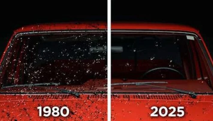 There is a strange new quiet settling across the world. Not the peaceful kind that comes after rain, but a deeper quiet. A hollowing. A silence where life used to move. People notice it in passing. Fewer butterflies drifting across a summer field. Fewer beetles on the path. Windscreens staying clean on long drives where they once became smeared with colour. The night lights that once flickered with wings now seem still.
